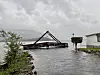 Måndag køyrde VTBs journalist på vatnet på Garvikstrondi. Ein av vegane på campingplassen var overfløymd, og vatnet faretruande nær å trenge inn i campingvogner og spikartelt. Og det trass i at campingeigarane har tatt omsyn til flaum.