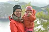 På stolpejakt: Initiativtakar for Stolpejakten i Kviteseid Cecilie Austjore-Hosum med veslejenta Soline på armen.