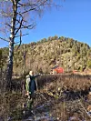 Det raude huset under åsen står på plassen der Kleivstaul øvre, nordre låg, og der Sigrid T. Kleivstaul budde på slutten av 1700-talet. Ragnar står ved dei attgrodde tuftene etter Kleivstaul øvre, søndre.