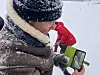 Såvi Byggland (10) er i tenkeboksen. Han får på seg eit par treski og testar bakken. For hans aldersklasse er det vanlege skibindingar som gjeld, men treskia er ikkje lette å styre likevel.