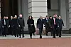 Statsminister Jonas Gahr Støre i det han kjem ut med den nye regjeringa på Slottsplassen etter ekstraordinært statsråd tysdag formiddag.Foto: Rodrigo Freitas / NTB / NPK
