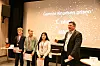 Vinnarane: — Alle prosjekta til elevane i 7. klasse trefte godt på berekraft og gjenbruk, men microplukkaren trur me er ein idé som me vil sjå i framtida, uttala ordførar Halvor Homme då han kalla vinnarlaget med Ingmar Kårvik, Mathea Holskar og Amira Mohamad Kaskous til scenen.
