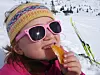 Hannah K. Johansen koste seg med appelsin på påskeskitur i solfylte Eggedalsfjella i Buskerud for nokre år sidan. I år kan påskesola bli ekstra sterk. Foto: Erik Johansen / NTB / NPK