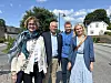 Brita Straume (f.v.), Tor Egil Syvertsen, Christoffer Solstad Steen og Tanja Loftsgarden frå Trygg Trafikk var torsdag i Treungen for å feire ti år med kommunalt arbeid for trafikktryggleik.