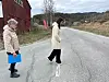 Marta Elisabeth Karlsen (t.v.) og Laila Karlsen Taraldlien frå Åmdals Verk håpar fylkeskommunen kan prioritere fylkesveg 38 mellom Krossli og Dalen.