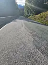 Stengt: Det er i den øvste hårnålsvingen i Eidsborgberget det er oppdaga setningar i vegen. Det gjer fylkeskommunen bekymra. Nå er vegen stengt.