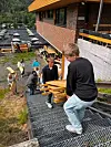 Elevane i 8. klasse ved Kviteseid skule har hjelpt Kviteseid turlag med å lage klopper. Her kjem Vetle Aamot og Tarjei Kvålseth Midtbøen (nærast) opp trappa.