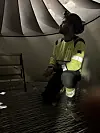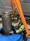 Steinar Evensen sørgjer for at det kjem skikkeleg på. Han har reist rundt som montør på kraftverk i heile Noreg i 57 år. Nå er han 74 og den eldste på jobb denne dagen. Lærlingen Sondre Holte hjelper til. Han er 18 og den yngste.