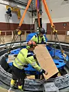 Arbeidet starta opp i april, og det siste halvåret har generator, turbin, inntak og flaumluke blitt rehabilitert. Når VTB er innom kraftstasjonen gjer dei siste finpuss på turbinen før det øvste lokket skal løftast på. Det har vore på rehabilitering sidan i vår, og vart frakta på lastebil med følgjebil frå Lier. Nå er det 14 tonn tunge lokket tilbake i kraftstasjonen i Tjønnefoss.