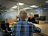 Vil vere anonyme: VTB har snakka med to som ikkje ynskjer å stå fram med namn og bilete i avisa. Mannen med ryggen til har ikkje blitt lura, men stilte opp på eit illustrasjonsbilete. Her får han gode råd av Ellen Sofie Skansen i Sparebanken Sør.