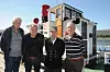 Torgeir Nordal (t.v.), Tellef Fossli, Olav Tveitane og Reidar Skogheim ved båten Fram, der det blir nytt tilbod for turistane i sommar.