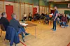 Heldt appell: Einar Heggtveit heldt appell for dei frammøtte på folkemøtet ved Brunkeberg oppvekstsenter onsdag kveld. Rundt 30 personar hadde samla seg for å diskutere skulens framtid.