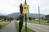 Olav og Elisabeth Hagen Kvalem monterer opp skiltet og førebur seg til årets dyrskuparkering, vel og merke bare på ein liten del av jorda kring heimen Suigard Nordgarden.