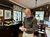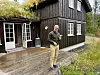 Inne på hytta jobbar han med å få i gang ei varmepumpe. Me kikkar oss rundt i ei flott hytte med fine Telemarks-detaljar.