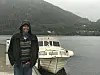Båtgjest: Jarle Andersen og kona hadde ein stopp på gjestebrygga i Kviteseid på veg opp Telemarkskanalen. – Me kosar oss sjølv om det regner. Her har me straum, og det er akkurat som å vere i campingvogn, smiler han.