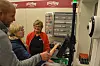 Blei registrert inn på kassa: Fredag 5. november opna Snarkjøp Åmotsdal som heildigital og døgnopen daglegvarebutikk for bygdefolk, hyttefolk og gjennomreisande. Dagleg leiar i Snarkjøp, Per Eivind Vik (t.v.), hjelper kunde Tove Lunde Aase å registrere handavtrykk i kassasystemet. Bak Sigrun Dyrland Eidal.