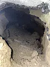 Stort hol: Under asfalten på Brøløsvegen har det stadig dukka opp nye utfordringar med vass- og avløpsnettet. Under fortauet ved butikken T. Tveitan hadde lekk vatn vaska vekk massar, og eit to og eit halvt meter djupt hol kom til syne.