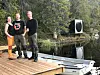 Bokssatsing: Lill Gullhav og Tor Eirik Pollestad fekk Asbjørn Reksten Stigedal (t.h.) frå Livit AS på besøk ved Åmlivatn då overnattingstilbodet Birdbox blei floge på plass med helikopter førre veke.