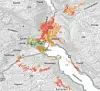 Kartutsnitt av området som vil kunne oppleve periodevis redusert kvalitet eller manglande dekning i samband med arbeidet. Dei oransje felta viser område der kapasiteten kan vera redusert. Dei raude der dekninga kan forsvinne heilt.