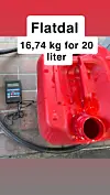 Kanna blei nulla på vekta, og me starta å fylle diesel til stasjonstala viste 20 liter. Vekta sa 14,9 kilo. Det var tydeleg mindre på kanna enn forventa.