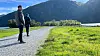 Uforståeleg: Sondre Berget (nærast) synest vedtaket PMU fatta onsdag er uforståeleg. – Eg forstår ikkje at klaga er imøtekomen når vegen likevel skal handsamast etter jordlova, seier Berget til VTB, – Me får ta dette med advokaten. Her vandrar brørne Berget langs vegen saka handlar om. Biletet er tatt i september 2022, kort tid etter at PMU vedtok at vegen var ulovleg og måtte fjernast.