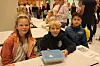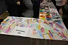 Frå ein av dei populære bodene, der ein selde veggdekorasjonar og bokmerke. Kate Marita Birkeland Nilsen frå 4. klasse hadde laga veggdekorasjonar og var nøgd med resultatet.