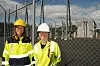 Nøgde: Torhild Pettersen Fjermedal (t.v.), seksjonsleiar i Agder Energi Nett og Katrine Smith, senioringeniør elektro i Agder Energi Vannkraft er ved den nye trafostasjonen ikkje langt unna Høgefoss. Båe er godt nøgde med utbyggingane som er gjort.