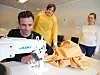 Saumar: Ehssan Issa saumar. Bak står ordførar Beate Marie Dahl Eide og Anne Marie Smeland frå frivilligsentralen.