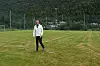 Har tomteforslaget klart: Ordførar og ordførarkandidat Jarand Felland meiner dei bør vurdere å bygge ny ungdomsskule der grasbanen er i dag, mellom kunstgrasbanen og Tokkeåi.