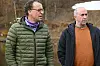 Sp-ordførar Jarand Felland (t.v.) og gruppeleiar for Ap Kjell Magne Grave er ikkje alltid einige om politiske prioriteringar. Her frå ei synfaring for ei stund sidan.
