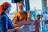 Symre Taugbøl Bang (t.h.) blei tildelt ein gåvesjekk på 50 000 kroner og Sør musikkpris frå dagleg leiar i Musikkontoret Sør, Anette Bylund.