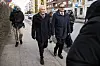 Dei seks kom i ein bil registrerte på Økokrim, skriv VG. Også Aftenposten melder om ransakinga. Då tidlegare statsminister Jagland sjølv kom ut av leilegheita, kommenterte han saka kort overfor pressa: