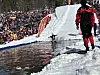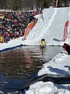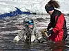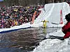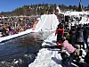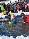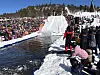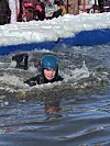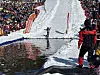 Og det gjer det verkeleg, for i bassenget jobbar dei rett før konkurransen med å fjerne isbitar.