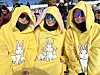 For dei tre venninnene Mathilde Hanssen, Stella Møller Nygaard og Marie Bostad Myhra frå Skien er det tradisjon å vere på Rauland i påska. Dei fortel at familiane deira har hytte her og at dei alltid er her i påska. Nå har dei kledd seg ut i matchande, gule, store genserar, sjølvsagt med kaninører – dei er straks klare for å delta i Ta sjansen.