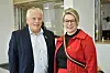 Leiar for Pensjonistforbundet, Jan Davidsen, og arbeids- og inkluderingsminister Marte Mjøs Persen (Ap) kommenterer resultatet av trygdeoppgjeret. Foto: Rodrigo Freitas / NTB / NPK