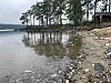 Fredag var det grønt vatn langs fleire av strendene ved Nisser. Blant anna her i Kyrkjebygda. Tysdag var det ikkje synleg lenger. Og då skal det ifølgje kommunen vere trygt å bade.