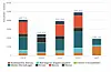 Godt i gang: Det meste som er samla inn på førehand i Vinje kjem av ei monaleg auke i summen som kommunen bidreg med (oransje), men også skular og barnehagar (mørkeblå) har fått inn mykje på førehand. Diagrammet viser kva som vart samla inn i Vinje dei siste fem åra, og er henta frå giverstafett.no. Der kan alle som vil gå inn og følge med på tala for kvar kommune.