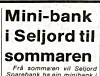 Minibank i Seljord til sommaren Publisert 27.11.2014 - 00:00 Sist oppdatert 28.06.2018 - 20:09 Vel korleis du vil lesa oss! 5 kr for 5 veker Deretter 199 per månad Inga binding KJØP Er du abonnent? Logg inn her nyheter