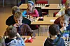 Aane Tveiten Sannerholt (i striper) i djup konsentrasjon. Så djupt konsentrerte han seg, at han blei telemarksmeister i klassa si. Bak han sit klubbkamerat i Geitebukken, Linnea B. Øygarden.