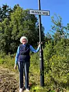 Lett på foten: – Skal eg gå bort til stolpen, kanskje? spør Hilda Tjønn (95). Før me veit ordet av det har ho sett att rullatoren på vegen og kryssa grøfta med lette steg.Åshild Emma Solbjør