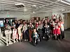 Godt oppmøte: 18 mødrer og 19 babyar var samla til jolebord på Austbø hotell. Christine Graneng (t.v.) med sin tre veker gamle gut, Michelle Collins med Tadhg, Susann Kiste med Mathea, Grethe Seim med Felix, Torunn Johanne Tvedt med Thelma, Ida Seim med Bjørg, Åse Versto Kringlegarden med Ådne, Madeleine Ek Hestdalen med Styrk, Emilie Narvestad med Maia, Kari Vinjerui med Live, Hege Slåtta Thomsen med Elina, Sara Isik med Philip, Birgith Hommo med Bea, Anne Midtgarden med Matilde, Silje Bringsvær Karlsen med Ellie og Maja, Åshild Bringsvær-Sunde med Olav og Matja Kostveit (framme) med Reodor.