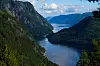 Innsjøen Bandak ligg i Tokke og Kviteseid kommunar og har eit heilt unikt namn. Telemarkingane er kreative i namngjevinga og i Kviteseid finn ein mellom anna Dritarodden, Migrenna og Faen. Foto: Cornelius Poppe / NTB / NPK