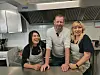 Vertskap: Dagens vertskap på Waldenstrøm kafé; Regie (t.v.) og Jørn Wagner saman med Halyna frå Ukraina som har praksisplass/språktrening på kafeen ein dag i veka.