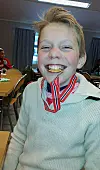 Are Sæther Midtbø (13) vann gull i Austlandsmeisterskapen i skiskyting laurdag. Han takla både vind og snøvêr betre enn konkurrentane på sprintdistansen.
