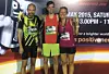 Anja Elise Lid frå Høydalsmo gjekk til topps i Singapore Night Trail. Her er ho og sambuaren Johan Nordby (i midten) saman med John Henry Strupstad. Dei blei høvesvis nummer fem og to i herreklassa.